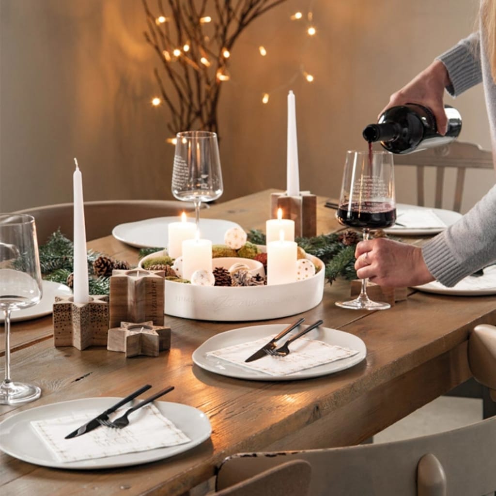 Ein schöner Tisch macht noch kein Fest – aber er sorgt dafür, dass alle gern sitzen bleiben. Für „Weihnachten au naturel“ heißt das: natürliche Materialien, ruhige Farben. Holz trifft Leinen, Glas trifft Kerzenschein, dazwischen ein paar Fundstücke aus dem Wald. Einer unserer Lieblingsgäste ist für diesen Anlass übrigens das Label EULENSCHNITT. Besonders das Steingut-Geschirr und die kleinen Holz-Kartenständer sind wie gemacht für den natürlichen Xmas-Look!