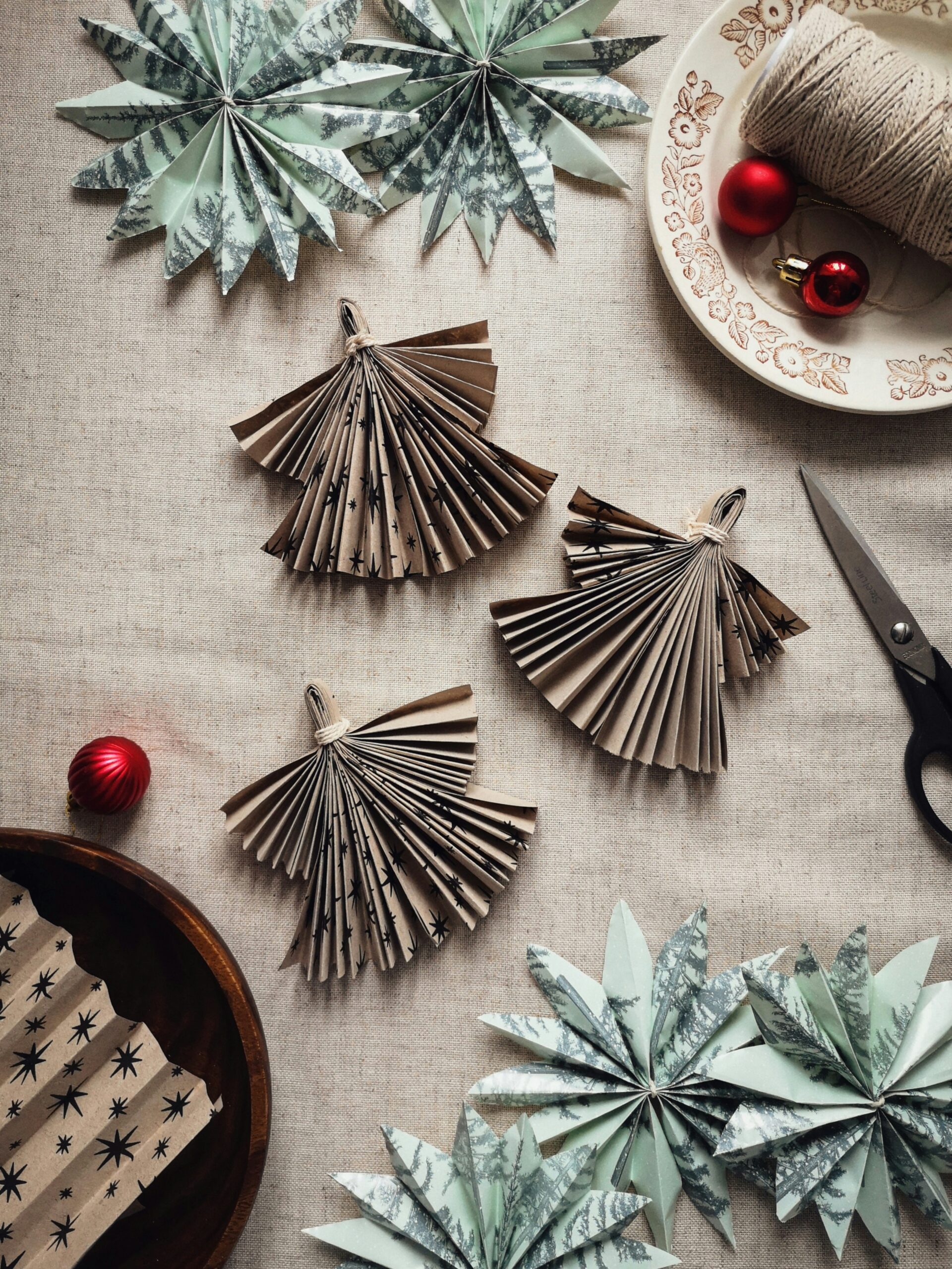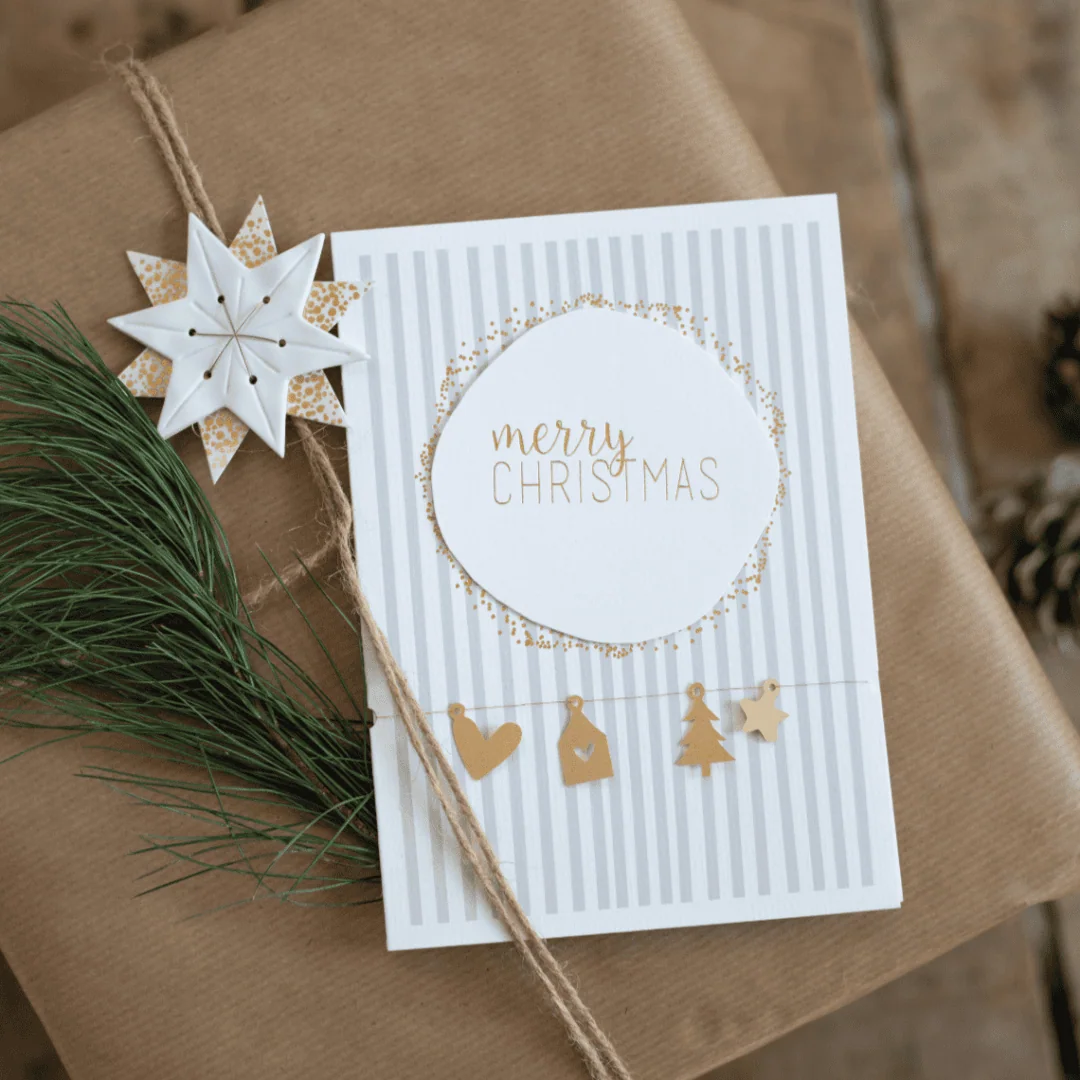 - Soft & festlich: Salbeigrün + Leinen-Grau + ein Tupfer Gold auf 2–3 Karton-Sternen.