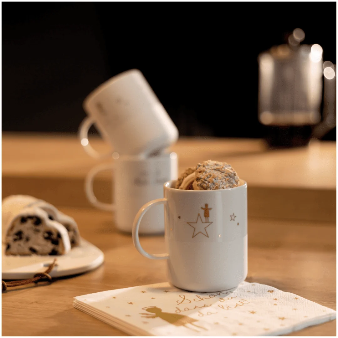 In große Mugs passen kleinere Geschenke wunderbar hinein – und die Tasse ist dabei natürlich selbst eines! Die Fine Bone China-Modelle von SOPHIE ALLPORT, GREENGATE oder RÄDER in weihnachtlichen Motiven eignen sich bestens dazu! Einfach mit freudebringenden Gaben, wie einem Halstuch, Beauty-Goodies, einem Stifte-Schreibblock-Set oder einer selbstgebackenen Keks-Mischung befüllen. Noch ein hübsches Band drumherum binden – Happy Christmas!