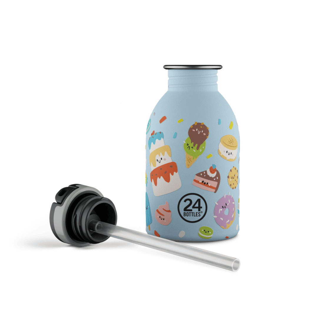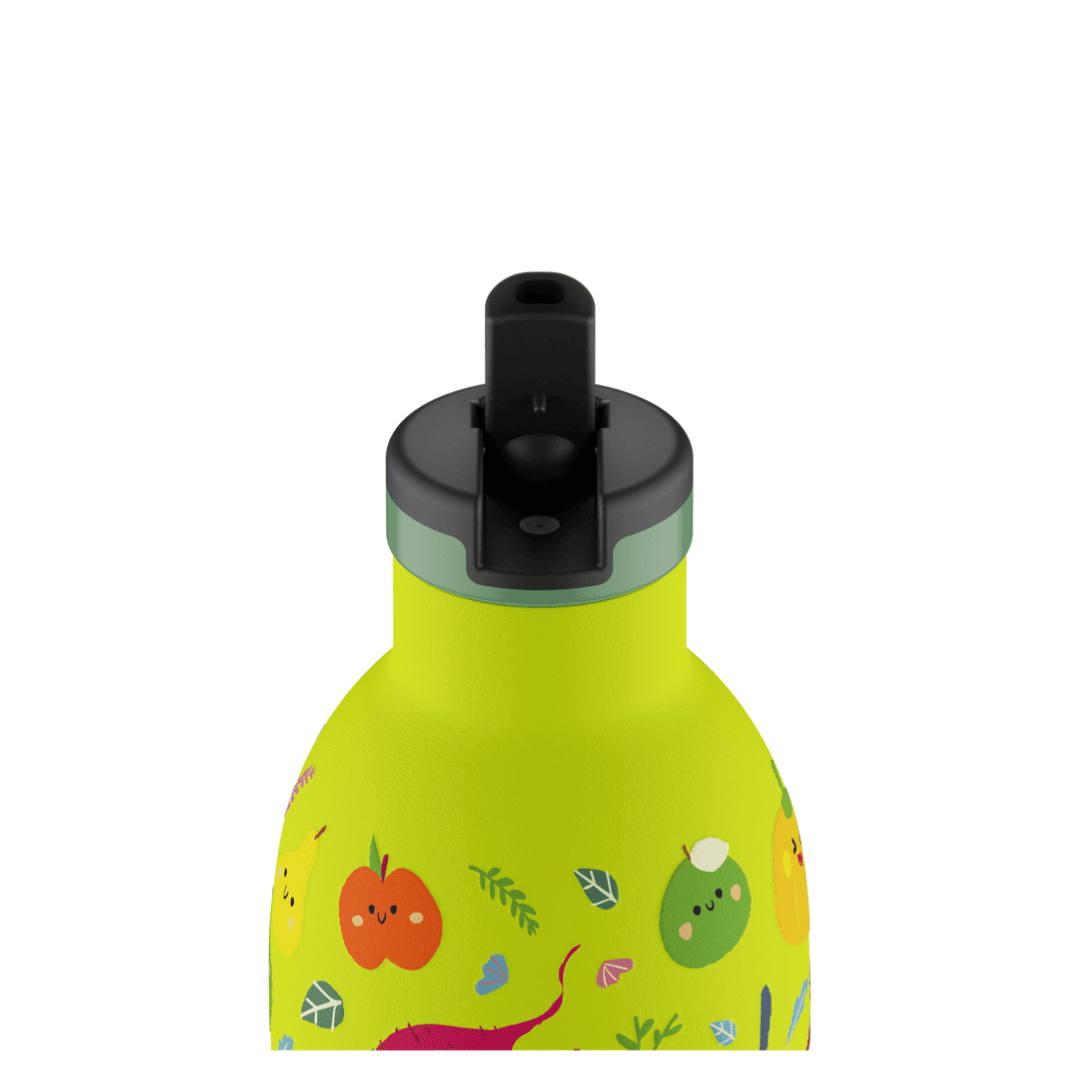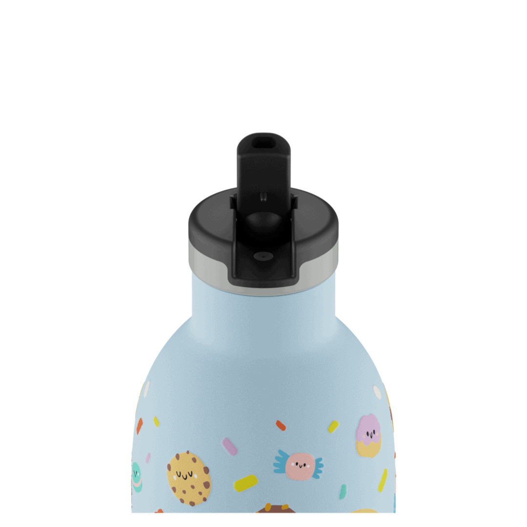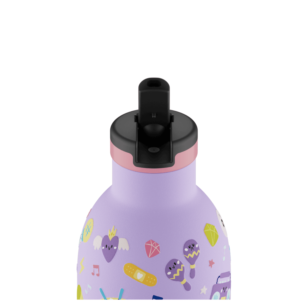 Die 24bottles Thermosflasche im Mini-Format mit süßen Motiven ist perfekt für Kinderhände konzipiert. Sie hält Getränke bis zu 12 Stunden warm und bis zu 24 Stunden kalt – perfekt für Milch, Saft oder Wasser, mit bzw. ohne Kohlensäure. Ihr Hals ist breit genug, um auch Eiswürfel einzufüllen und das hochwertige Material nimmt weder Geruch noch Geschmack an. Der praktische Sportverschluss sorgt für einfaches Öffnen und der integrierte Strohhalm ermöglicht bequemes Trinken, auch in aufrechter Position.