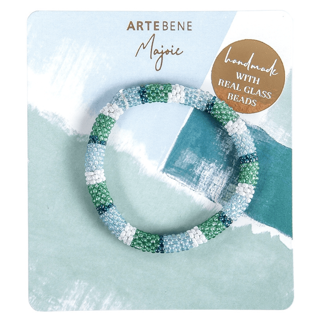 Beim Betrachten dieses hübschen Armbands hört man schon fast die Wellen rauschen. In kühlem Blau, dynamischem Grün und strahlendem Weiß erinnert es an den weiten Ozean und weckt sofort Urlaubsgefühle. Mit passender Back-Card perfekt zum Verschenken!