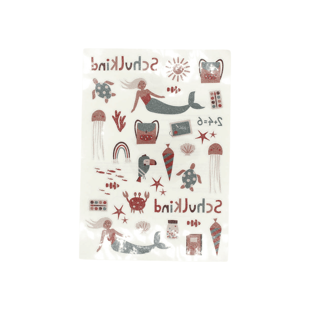 Tattoos wie die Großen? Mit diesen süßen Klebe-Tattoos im glitzernden Meerjungfrau-Design ist gute Laune garantiert! Auch geeignet als perfekte Überraschung für Geburtstagsparty-Goodiebags. Hautfreundlich, einfach anzubringen und vegan.