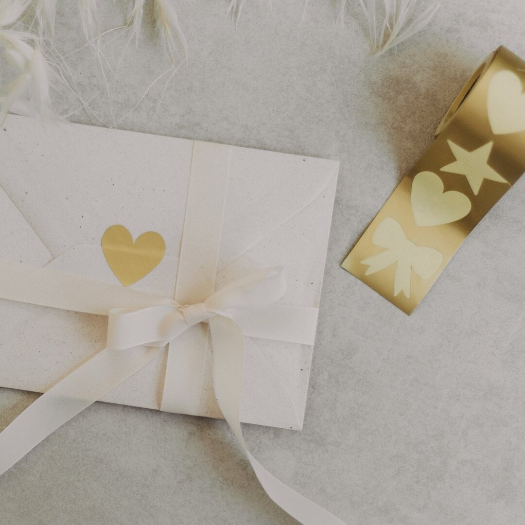 Verleihe deinen Geschenken und DIY-Projekten das gewisse Etwas: Die dekorativen Aufkleber in glänzender Goldoptik eignen sich ideal, um Geschenke liebevoll zu verzieren, Briefumschläge stilvoll zu verschließen oder Platzkärtchen charmant zu akzentuieren. Die Rolle enthält drei verschiedene Motive – Stern, Herz und Schleife – die deiner Kreativität keine Grenzen setzen. Ob für Geburtstage, Weihnachten, Hochzeiten oder einfach als besonderer Akzent im Alltag: Diese Sticker bringen Glanz und Persönlichkeit auf jedes Detail.