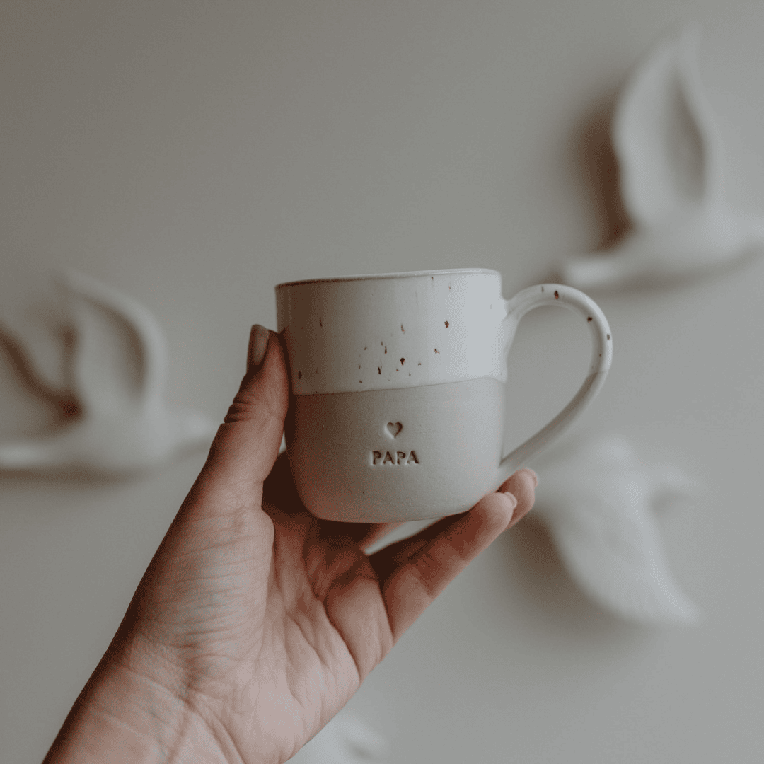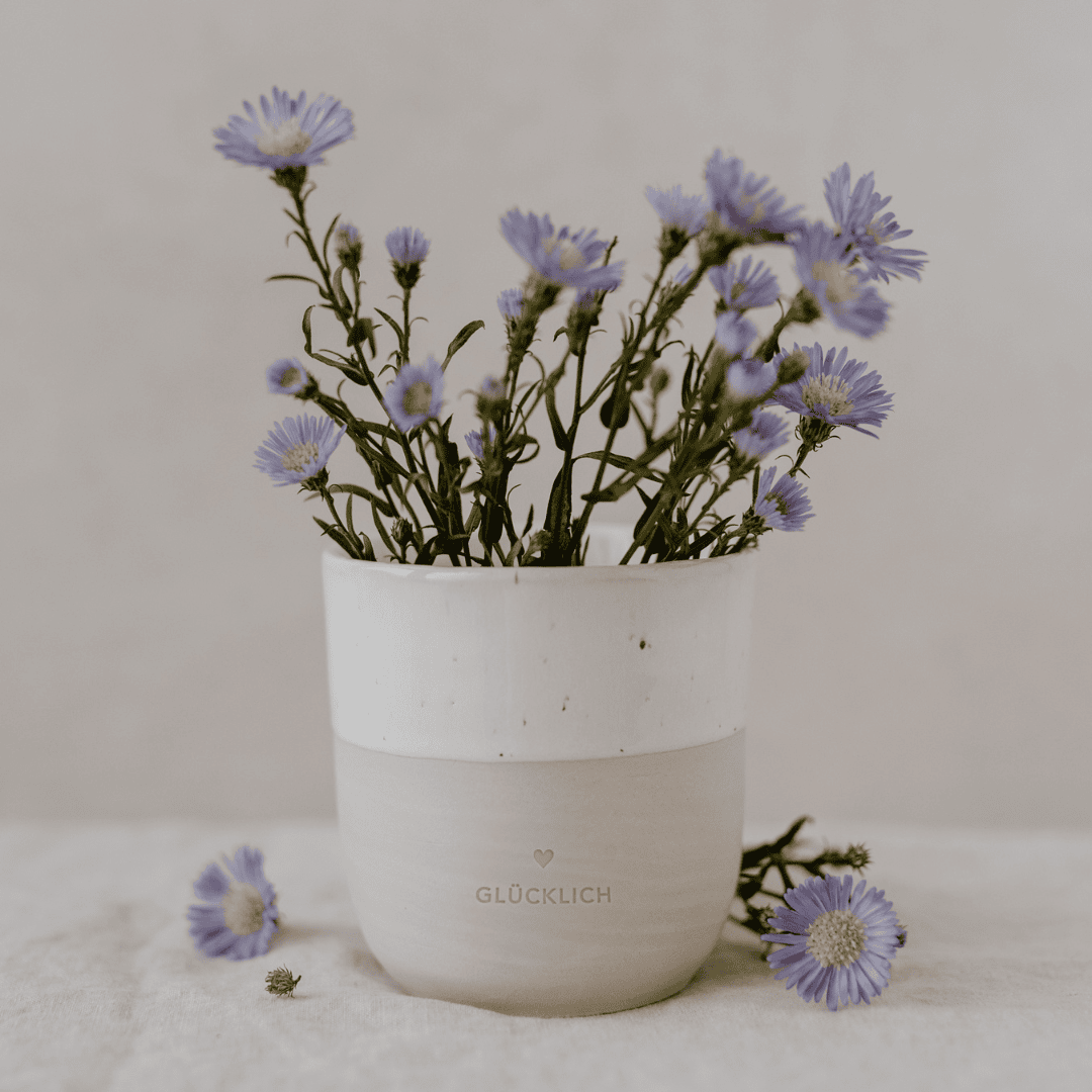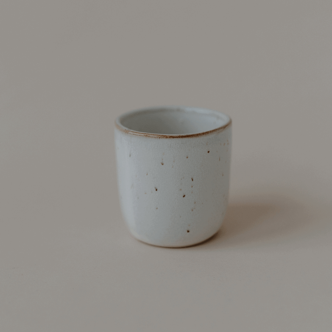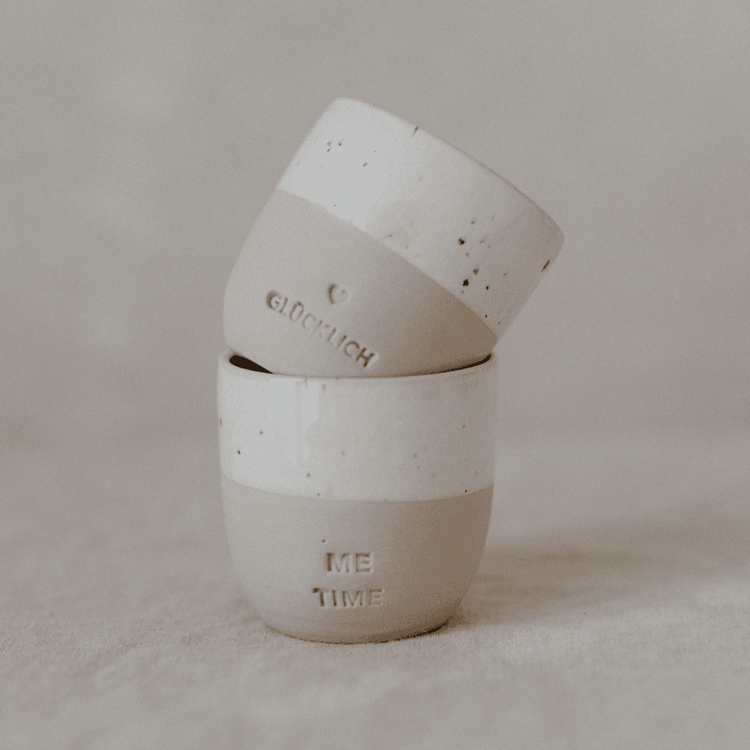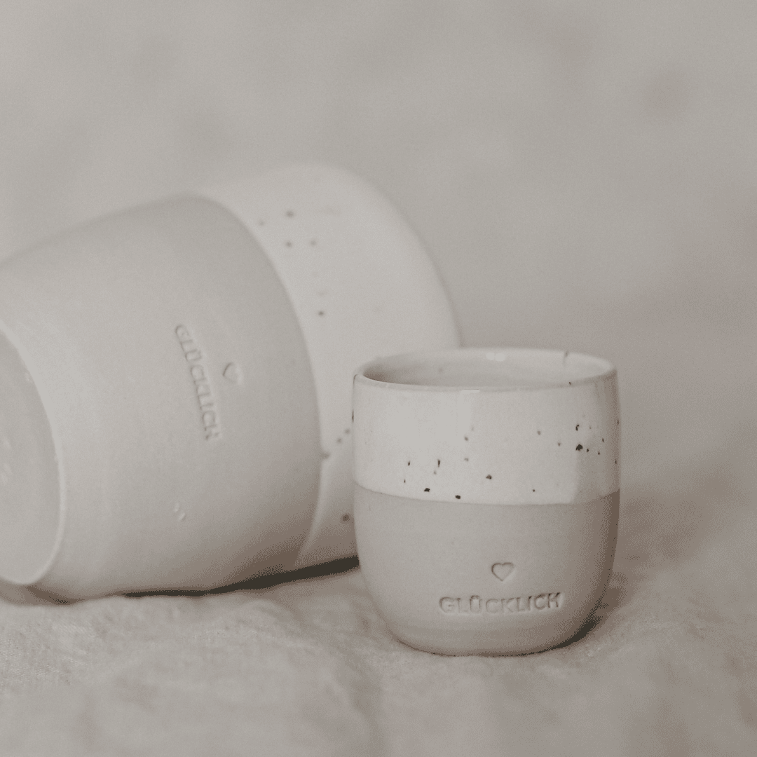 Die hübschen Steingutbecher von EULENSCHNITT werden von einer kleinen Töpferei in Portugal handgefertigt und bestechen vor allem durch ihre markante Glasur. Die natürliche Musterung erinnert an die Schale von Wachteleiern und kommt besonders gut in Kombination mit Holz und Leinen zur Geltung.