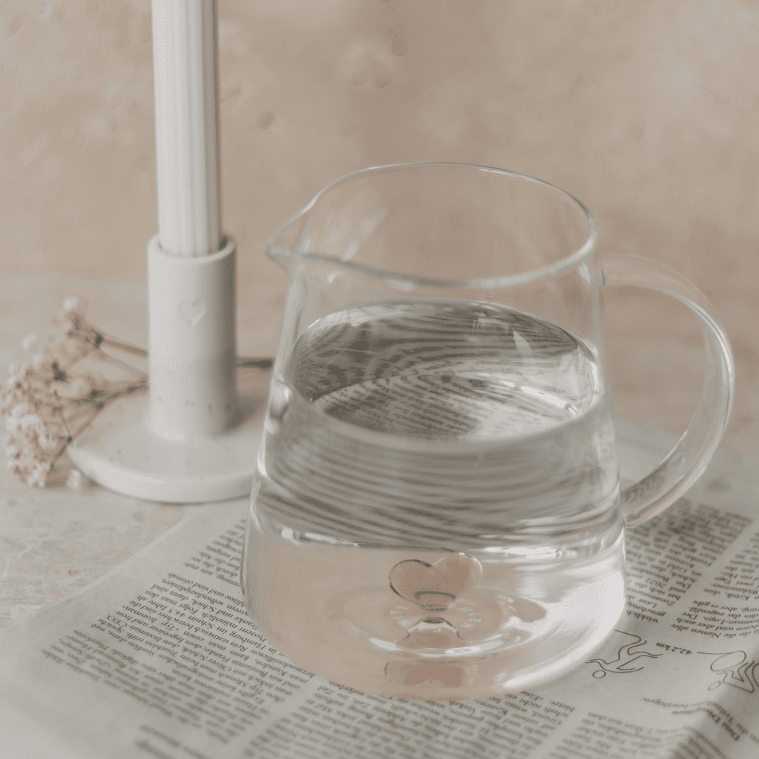 So schmecken Wasser, selbstgemachte Zitronen-Limonade oder frisch gepresster Saft doch gleich viel besser! Die minimalistische Karaffe ziert eine hübsche Herz-Figur, die sie zu einem ganz besonderen Hingucker auf dem Esstisch oder im Home-Office macht!