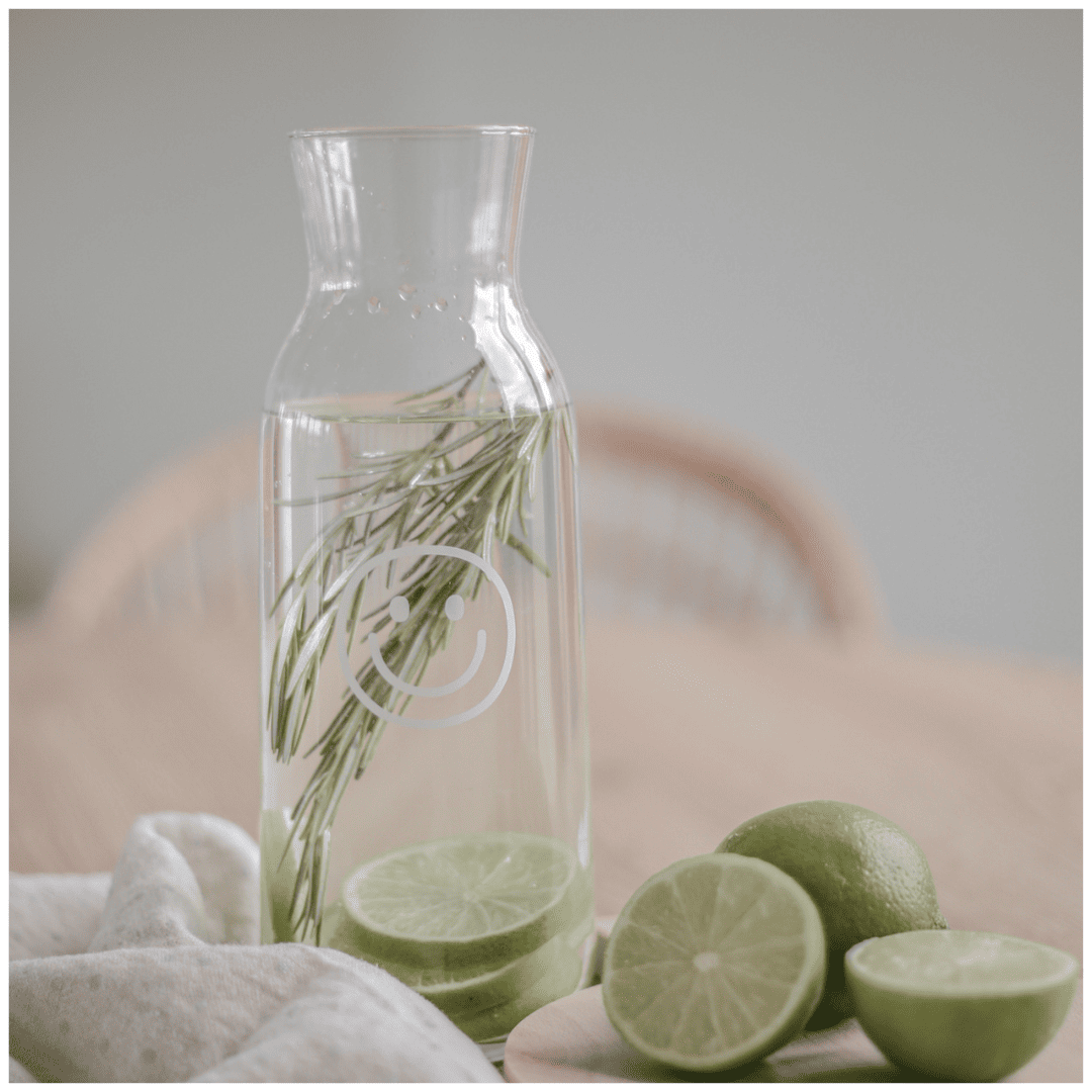So schmecken Wasser, selbstgemachte Zitronen-Limonade oder frisch gepresster Saft doch gleich viel besser! Die minimalistische Karaffe ziert ein freudiger Smiley, der sie zu einem ganz besonderer Hingucker auf dem Esstisch oder im Home-Office macht!