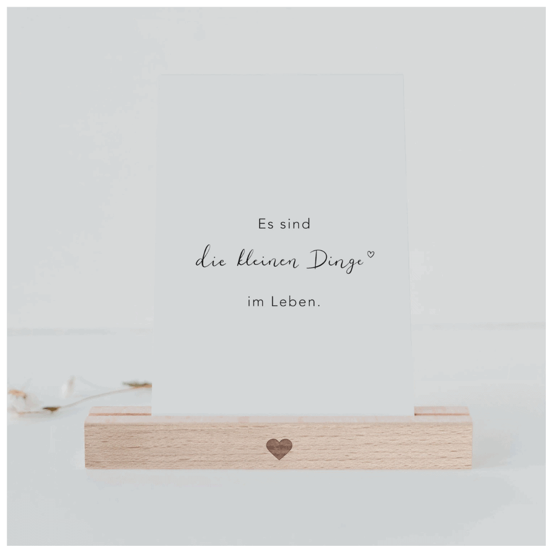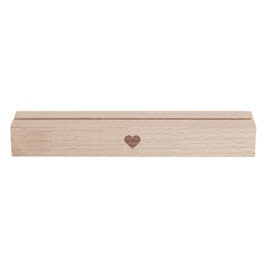 Diese Kartenständer aus Buchenholz bestechen durch ihr minimalistisches Design! Das kleine Herz auf der Vorderseite macht sie zu etwas ganz Besonderem. Mit einer Länge von je 15 cm eignen sie sich besonders gut für das Format DIN A6 im Querformat oder DIN A5 im Längsformat. Fotos, Einladungskarten, Postkarten, sowie Geburtskarten und andere Erinnerungsstücke kommen wunderschön darin zur Geltung. Ebenso gut kommen die Kartenständer auf Hochzeiten und besonderen Anlässen, als Halterung für die Tischnummern einer Sitzordnung zum Einsatz.