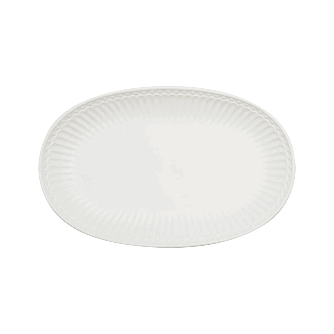 Ob auf dem liebevoll gedeckten Frühstückstisch oder zum Kaffeekränzchen am Nachmittag: Die ovale Servierplatte aus der Serie Alice ist ein zeitloser Klassiker.