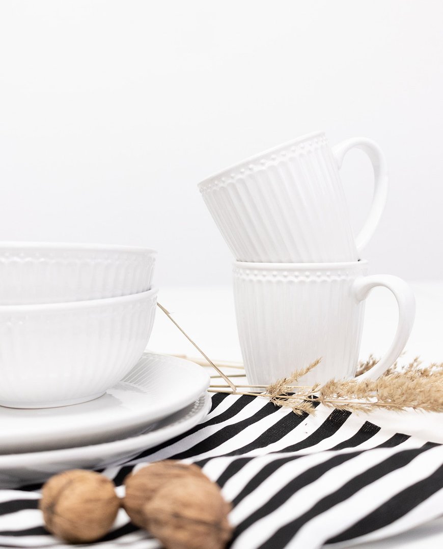 Ob auf dem liebevoll gedeckten Frühstückstisch oder zum Kaffeekränzchen am Nachmittag: Die hübsche Tasse mit Unterteller aus der Serie Alice ist ein zeitloser Klassiker. Besonders praktisch: Bei Bedarf kann sie auch als Saucier verwendet werden.