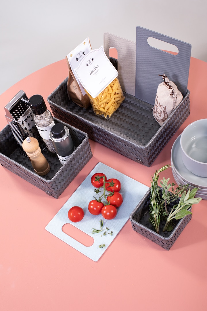 Die hübschen Aufbewahrungskörbe von Handed By bringen Ordnung in’s Zuhause! Sie eignen sich super für Schlüssel, kleine Gegenstände auf dem Schreibtisch oder in der Küche. Das Besondere: Sie sind handgeflochten und bestehen zu 50% aus recyceltem Kunststoff.