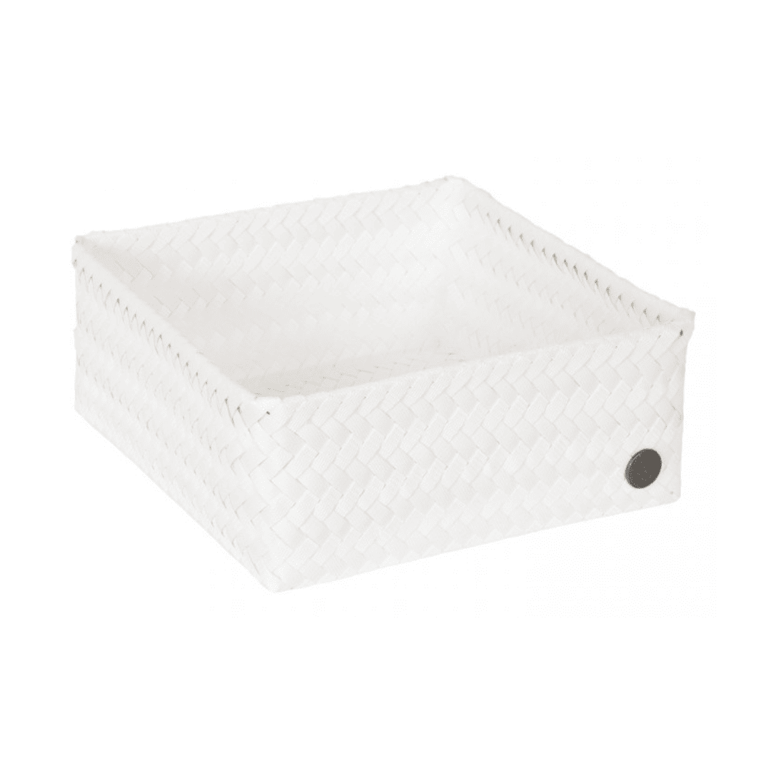 Die hübschen Aufbewahrungskörbe von Handed By in quadratischem Format sorgen dafür, dass keine Fläche im Zuhause ungenutzt bleibt! Sie sind praktisch für Schreibblöcke und Stifte auf dem Schreibtisch oder für Gewürzdosen und Flaschen in der Küche. Zudem lassen sie sich optimal mit anderen FIT-Körben kombinieren, zum Beispiel in einer Schublade. Das Besondere: Sie sind handgeflochten und bestehen zu 50% aus recyceltem Kunststoff.