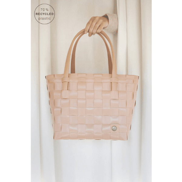 Die perfekte Wahl zum Einkaufen oder einen Tag am See. Die Henkel sind aus Kunstleder und bieten einen angenehmen Tragekomfort und die Oberfläche aus handgeflochtenem, recyceltem Kunststoff ist leicht mit Wasser zu reinigen.