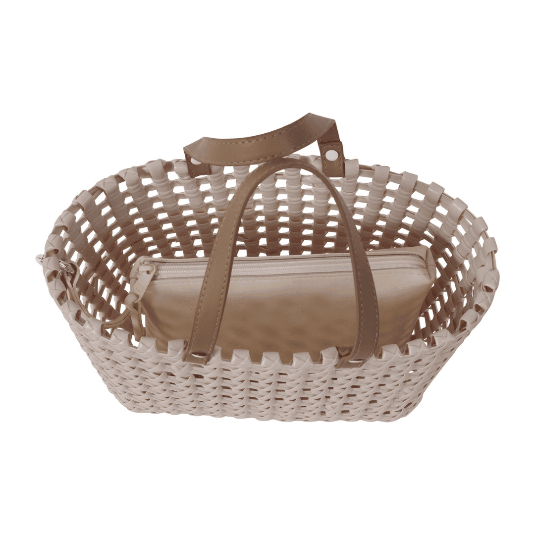 Die Handed By Maze Mini Handtasche vereint Stil und Funktion! Mit ihrem einzigartigen Design und dem verspielten Lochmuster verleiht sie jedem Outfit eine besondere Note. Die Tasche wird mit einer praktischen PU-Leder-Clutch geliefert, die sich abnehmen lässt und separat verwendet werden kann. Die Handed By Körbe sind handgeflochtenen und werden aus Materialien, die die Umwelt so wenig wie möglich belasten (z.B. Recycling-Kunststoff und Bambus) hergestellt. Die Produkte, auf denen sich das Hand-Logo befindet, werden auf faire Weise und garantiert zu 100 % ohne Kinderarbeit produziert.