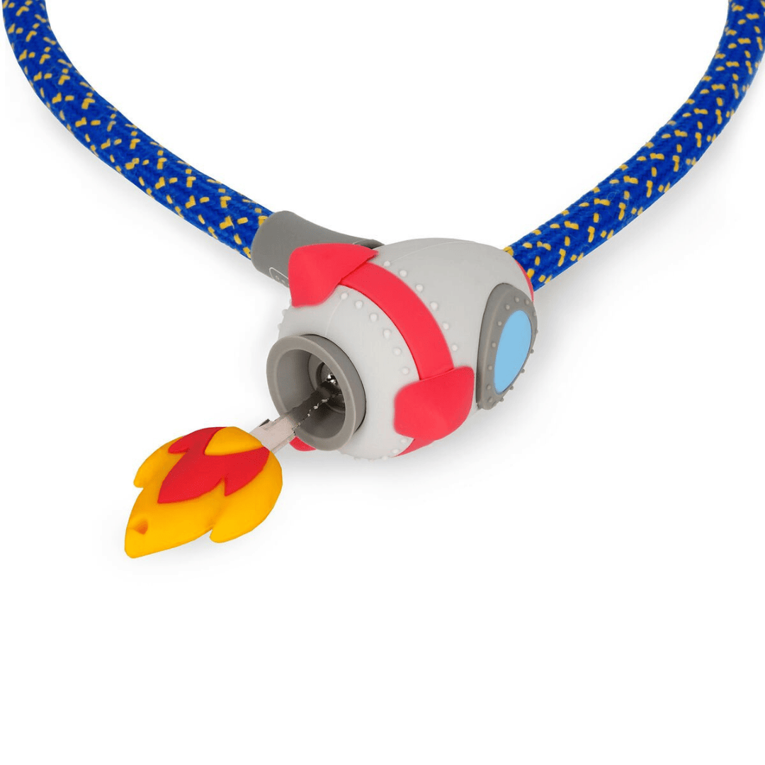 Die wohl bunteste und spacigste Diebstahlsicherung! Das Raketen-Schloss sichert nicht nur Fahrräder, sondern ist dabei auch gleich noch ein dekorativer Hingucker.