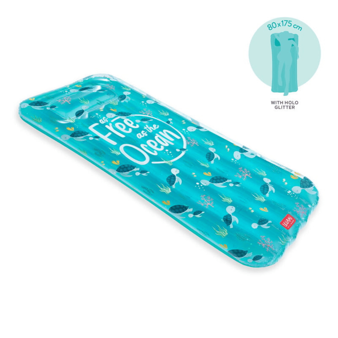 Im Leben muss man lernen, sich über Wasser zu halten! Das ist ganz einfach, wenn man es gemütlich (und cool) mit der aufblasbaren Luftmatratze mit Kissen im Schildkröten-Motiv von LEGAMI macht.