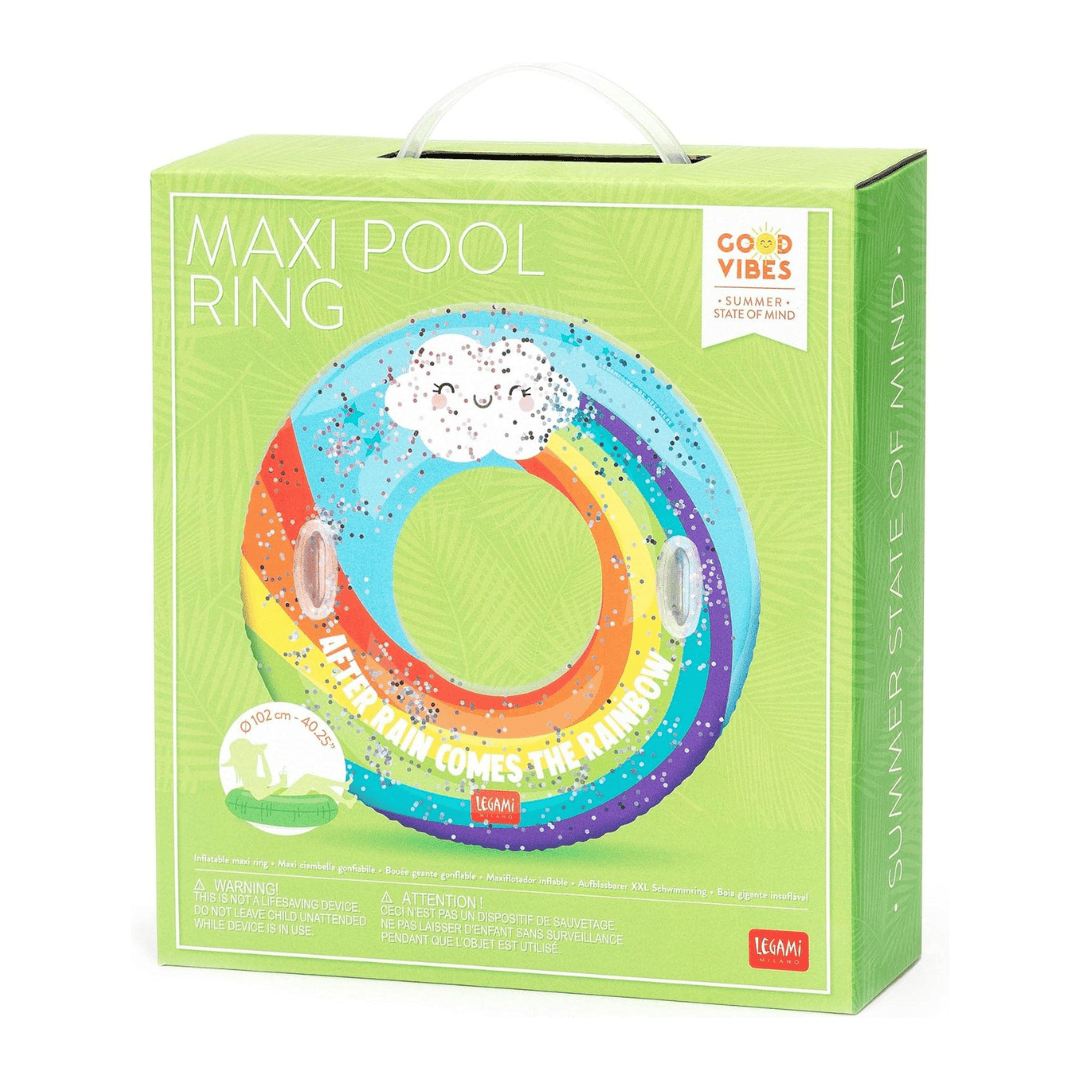Dein neuer Lieblingsbegleiter bei der nächsten Pool-Party! Der glitzernde Schwimmring garantiert Spaß beim Planschen und das bunte Regenbogen-Muster bringt obendrein direkt gute Laune!