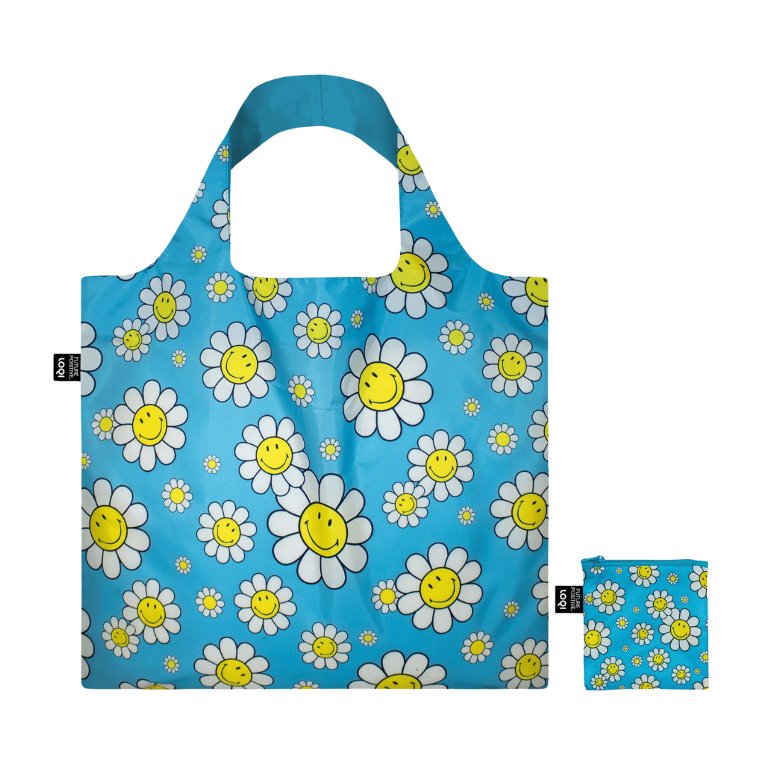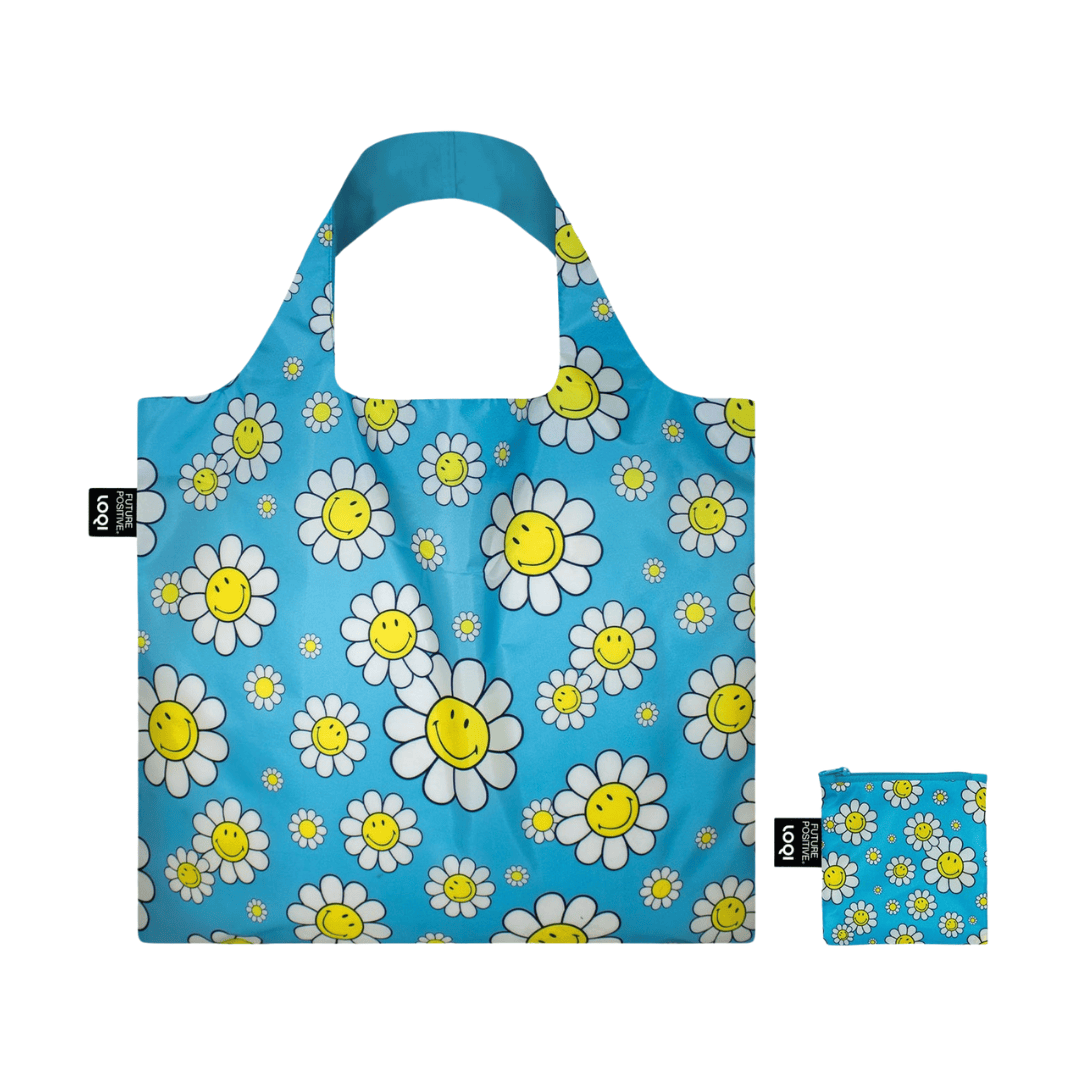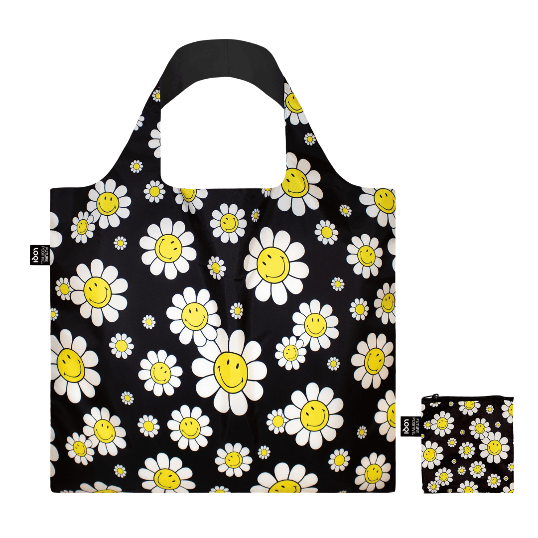 LOQI Faltbare Einkaufstasche „Smiley Flowers“, 3 Farben