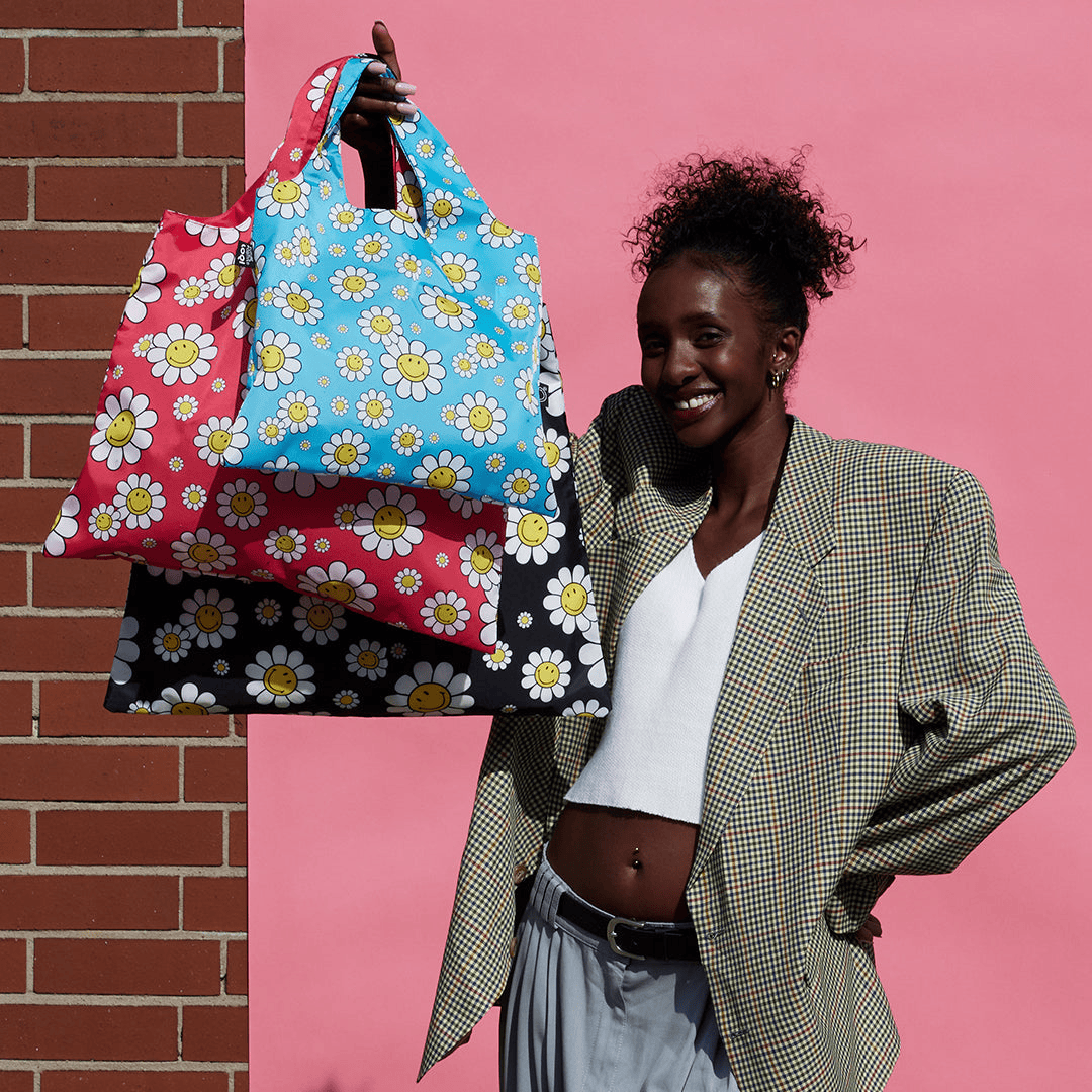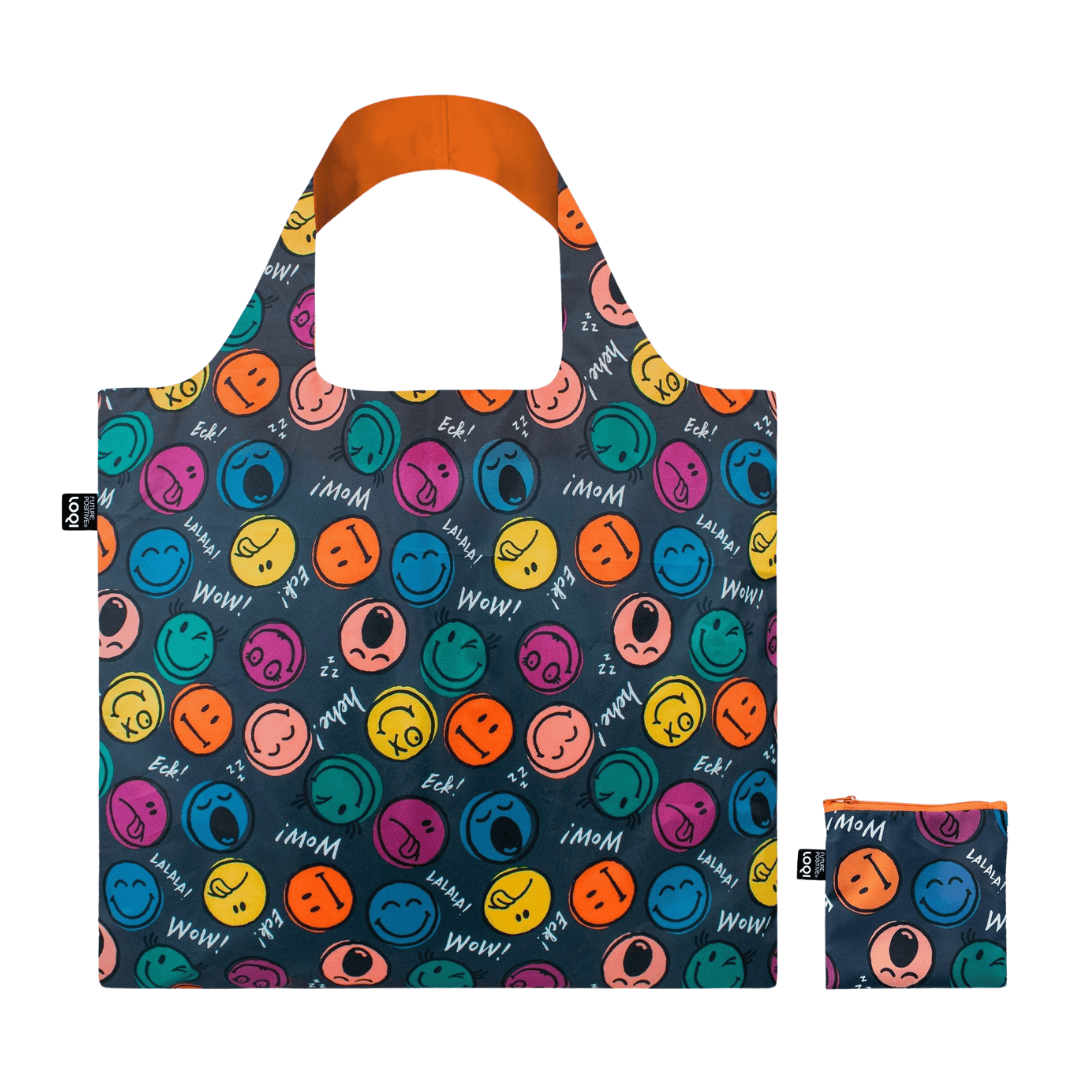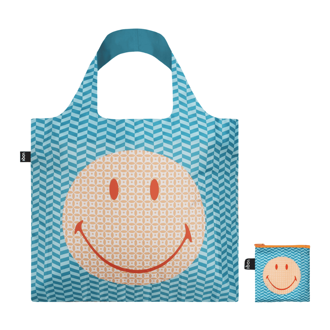 LOQI Faltbare Einkaufstasche „Smiley Flowers“, 3 Farben