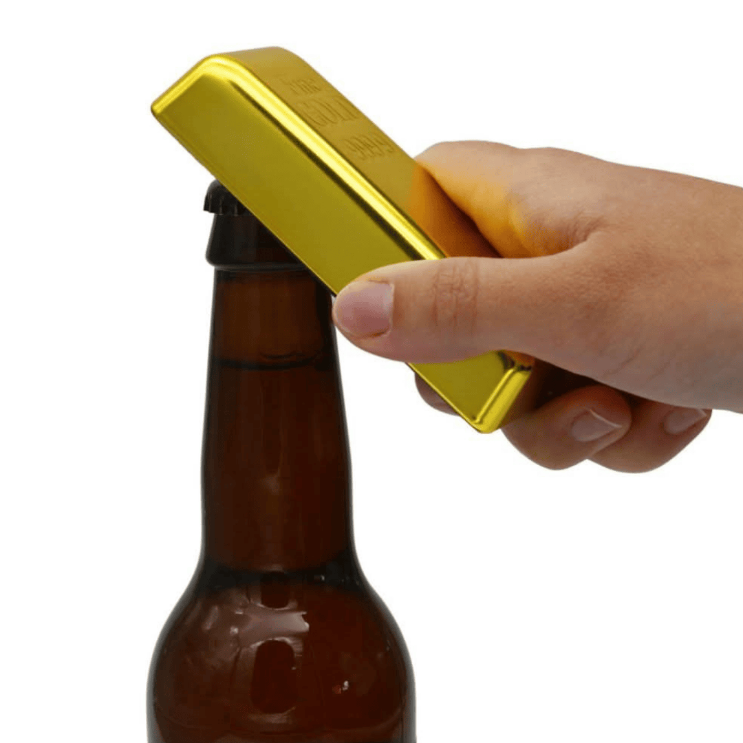 Edler kann man sein Bier wohl kaum aufploppen lassen! Dieser Flaschenöffner in Goldbarren-Form ist ein witziger Hingucker in der Küche.