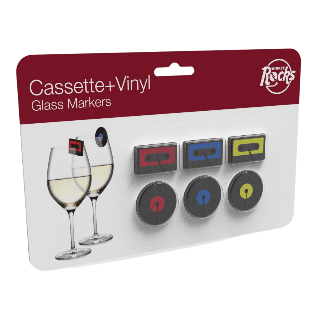 Das Must-have für die Retro-Party: Mit den coolen Kassetten- und Vinyl-Glasmarker besteht keine Verwechslungsgefahr bei den Getränken mehr!