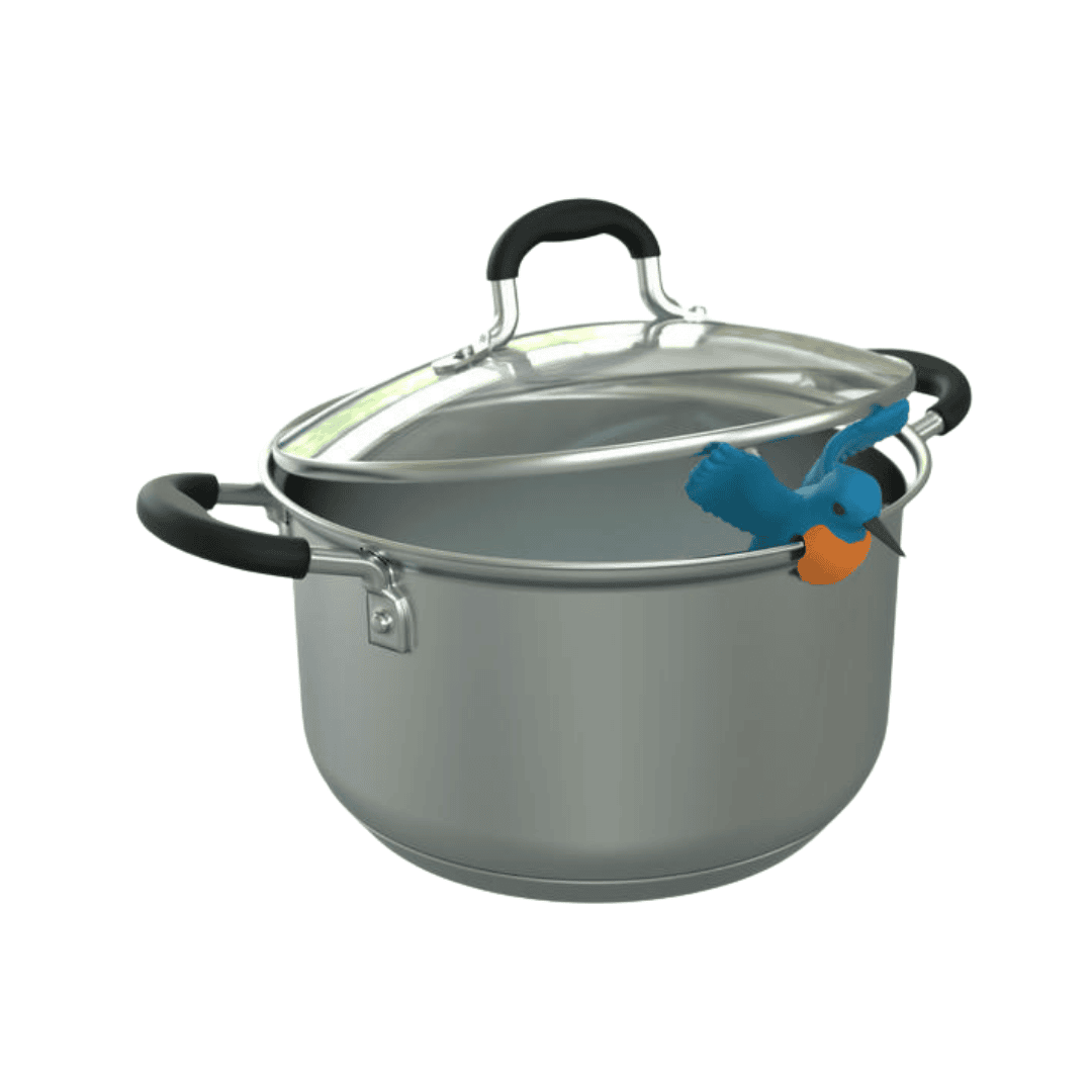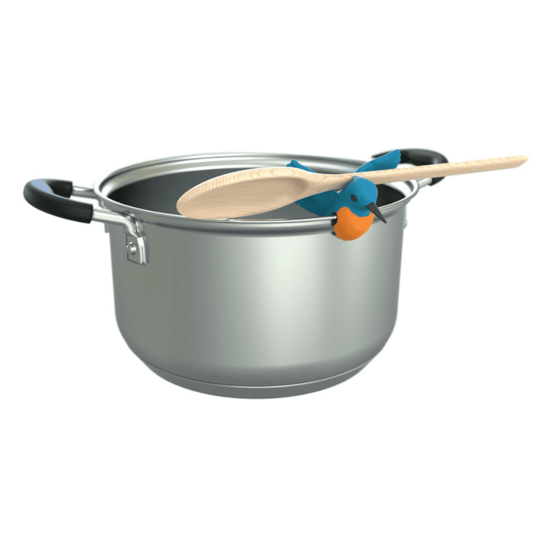 Vogelfreiheit beim Kochen: Dank des kleinen Silikon-Eisvogels fällt der Kochlöffel nie mehr in den Kochtopf und Kleckereien sind passé.
