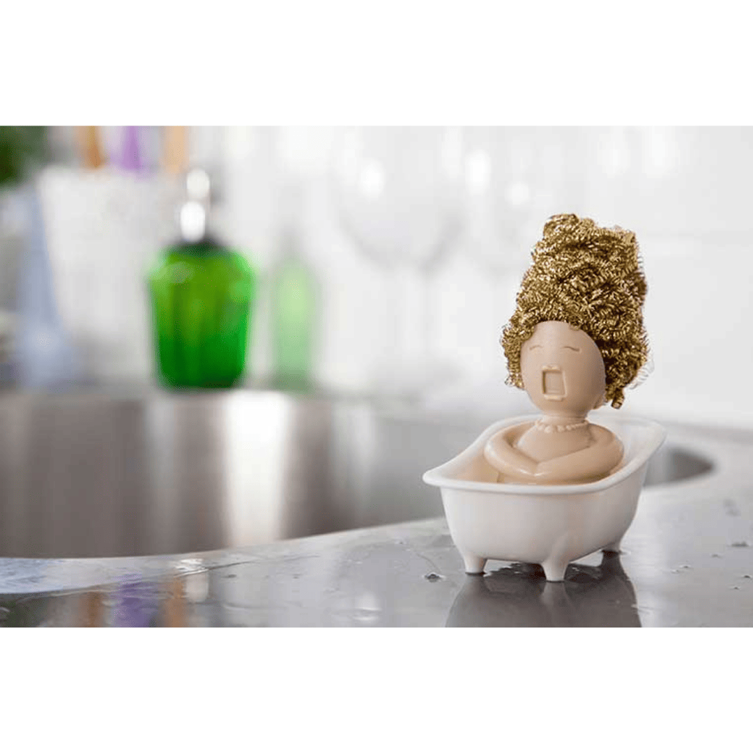 Damit wird der Abwasch zur glamourös-theatralischen Angelegenheit! Die in der Badewanne liegende Opern-Diva kann jeden handelsüblichen Schwamm als Hochsteckfrisur tragen und die Spülbeckenfläche vor Überschwemmungen retten. Auch witzig als Geschenk!