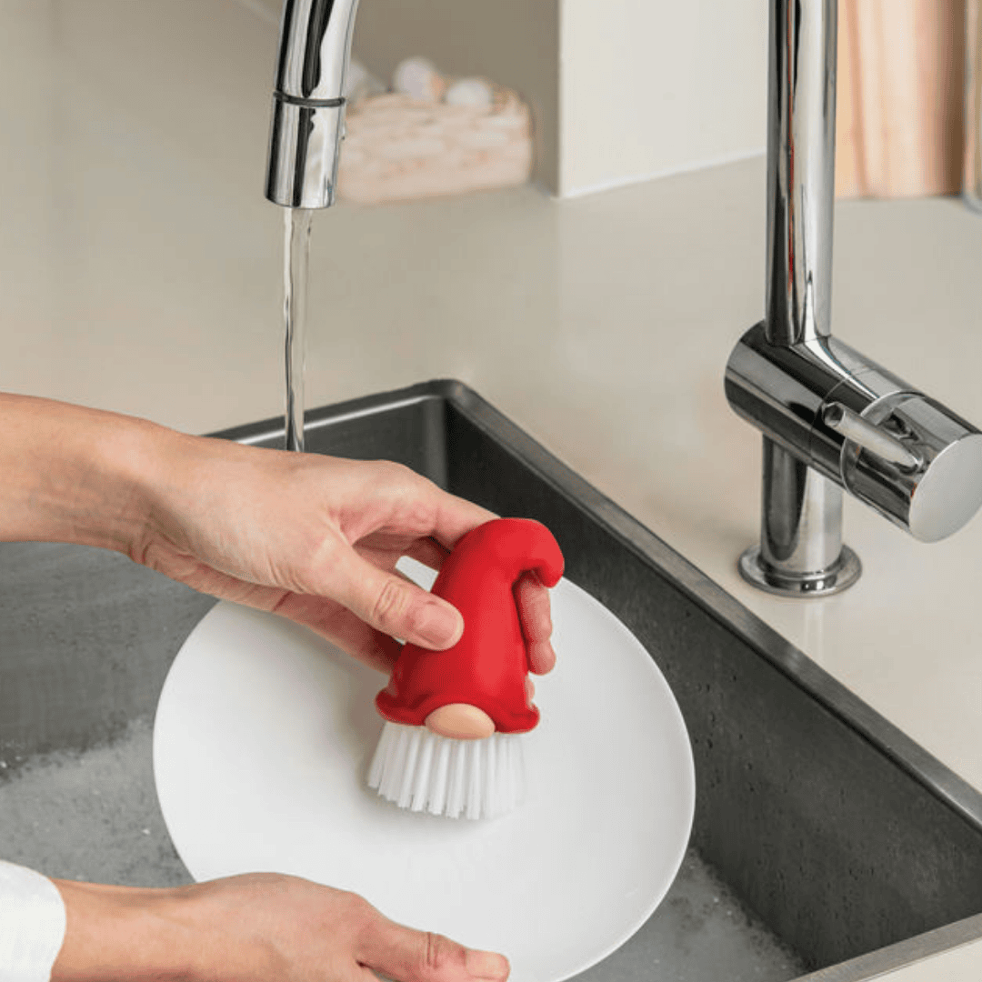 Dieser kleine Spülbürsten-Wichtel ist nicht nur herzallerliebst anzuschauen, sondern hat auch noch ein echtes Talent zum Geschirr-Spülen! Zum Ausruhen legt er sich gerne in seine kleine Ablageschale.