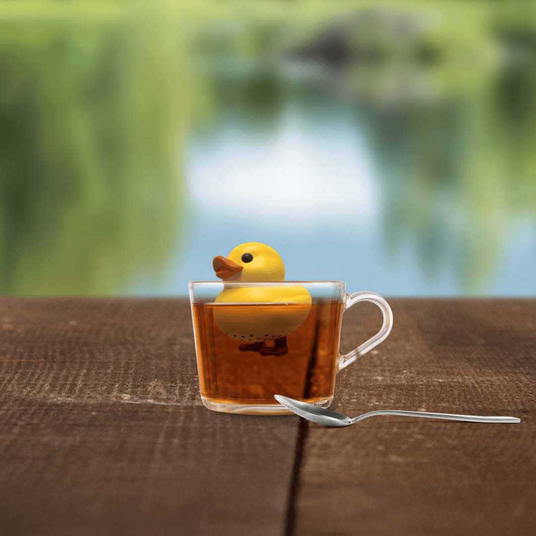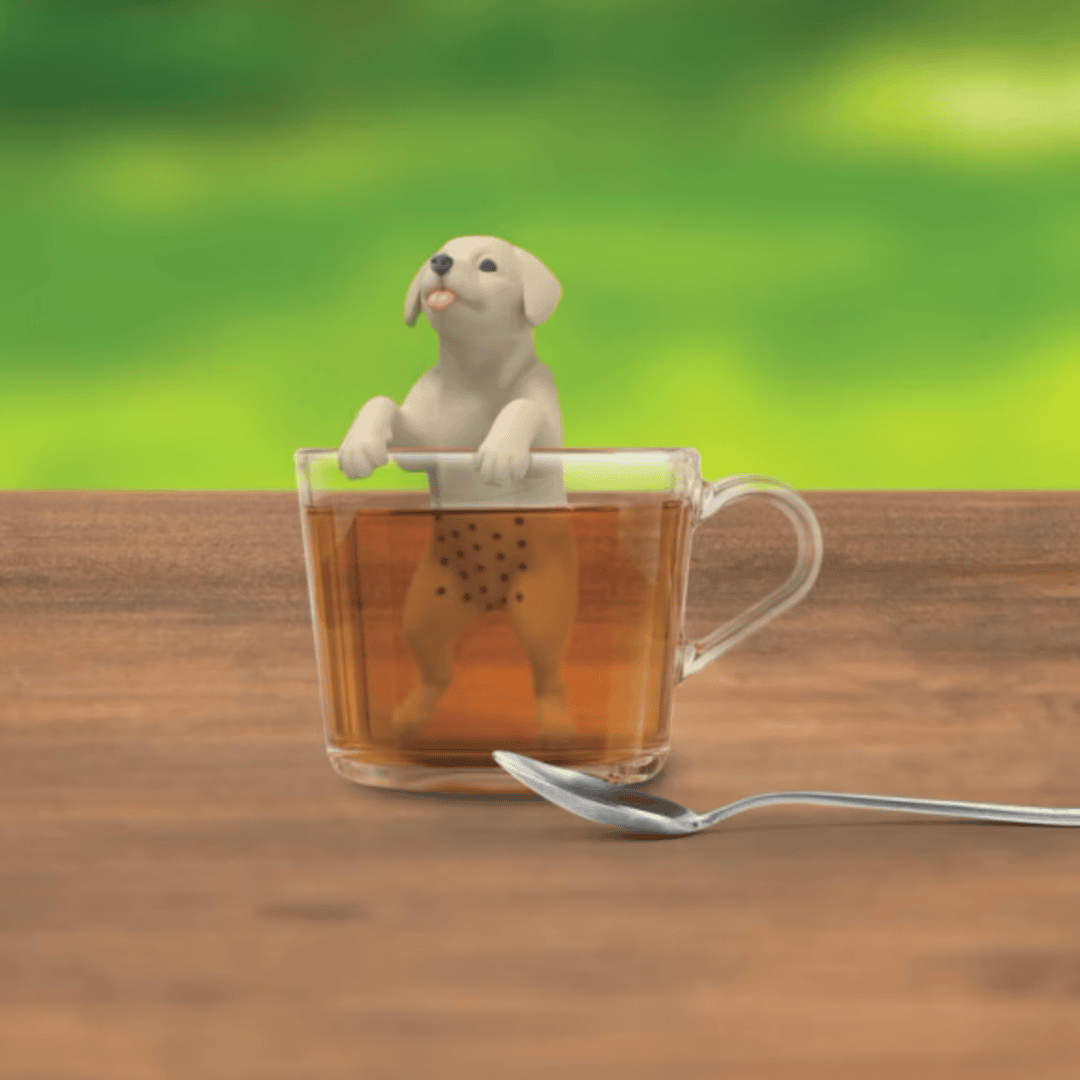 Na, wer nimmt denn da ein Tee-Bad? Der kleine Hund ist ein niedlicher Hingucker und hat immer aromatische Teekräuter mit dabei.