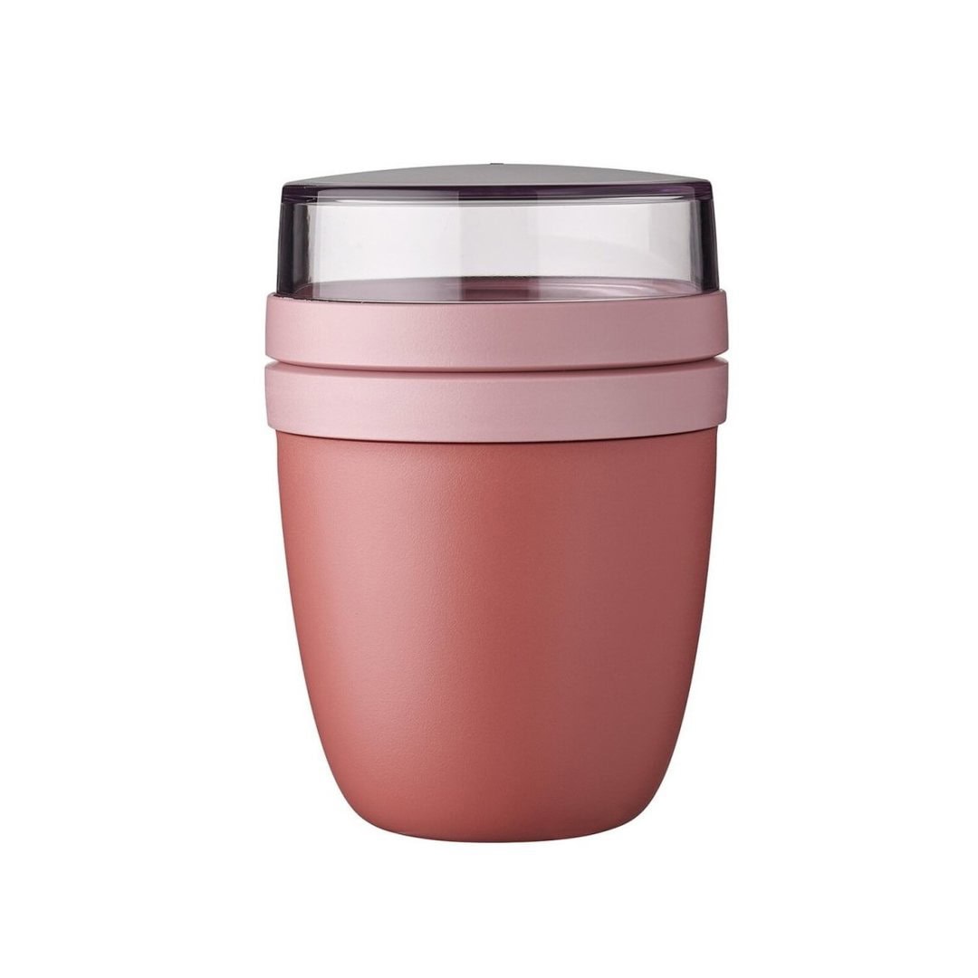 Der doppelwandige Mepal Thermo-Lunchpot Ellipse vereint zwei praktische Behälter in einem und ist deshalb ideal für Mahlzeiten unterwegs. Er bietet Platz für 500 ml + extra 200 ml im transparenten Behälter und ermöglicht ein praktisches Trennen von etwa Müsli und Joghurt oder Salat und Dressing. Der Becher ist 100% auslaufsicher, hält bis zu 12 Stunden kalt bzw. 6 bis 8 Stunden warm und passt mit seiner handlichen Größe in jede Tasche.