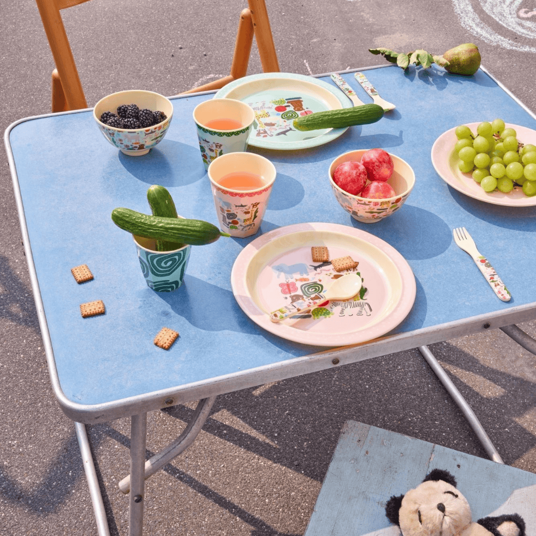 Auf diesem süßen Teller haben sich die lustigsten Land-, Wasser- und Lufttiere versammelt. Mit seiner flachen Form ist der Teller perfekt für jede Leckerei und eignet sich aus Melamin auch ideal für Outdoor-Schlemmereien. Weitere Produkte im passenden Design erhältlich!