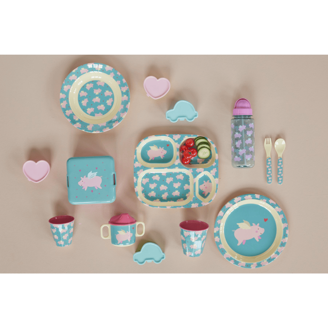 Wie eine Szene aus süßesten Kinderträumen: Die Serie „Flying Pig“ mit fliegenden Schweinchen und Herzerln zaubert Klein und Groß ein Lächeln ins Gesicht. Die hübsche Lunchbox ist perfekt für jede Leckerei und kann fürs Picknick wunderbar mit dem passenden Becher kombiniert werden. Weitere Produkte im passenden Design erhältlich!