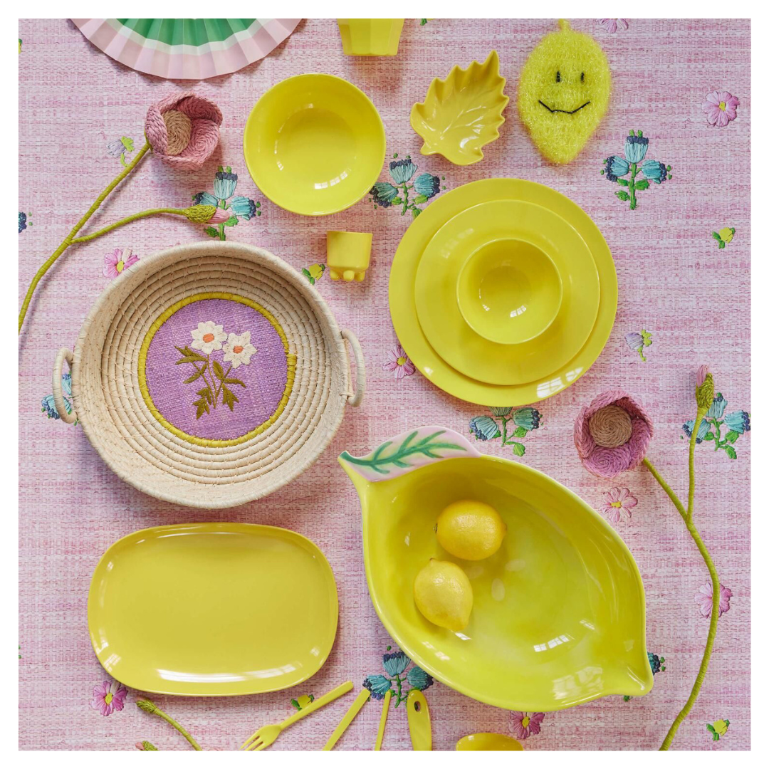 Die klassische, rechteckige Melamin-Servierplatte von Rice in fröhlichen Farben kann sowohl als kleines Tablett als auch als Teller benutzt werden. Die besondere Form bietet Platz zum Servieren kleiner Snacks oder etwa als Bühne für Kerzenhalter und andere Deko-Schätze.