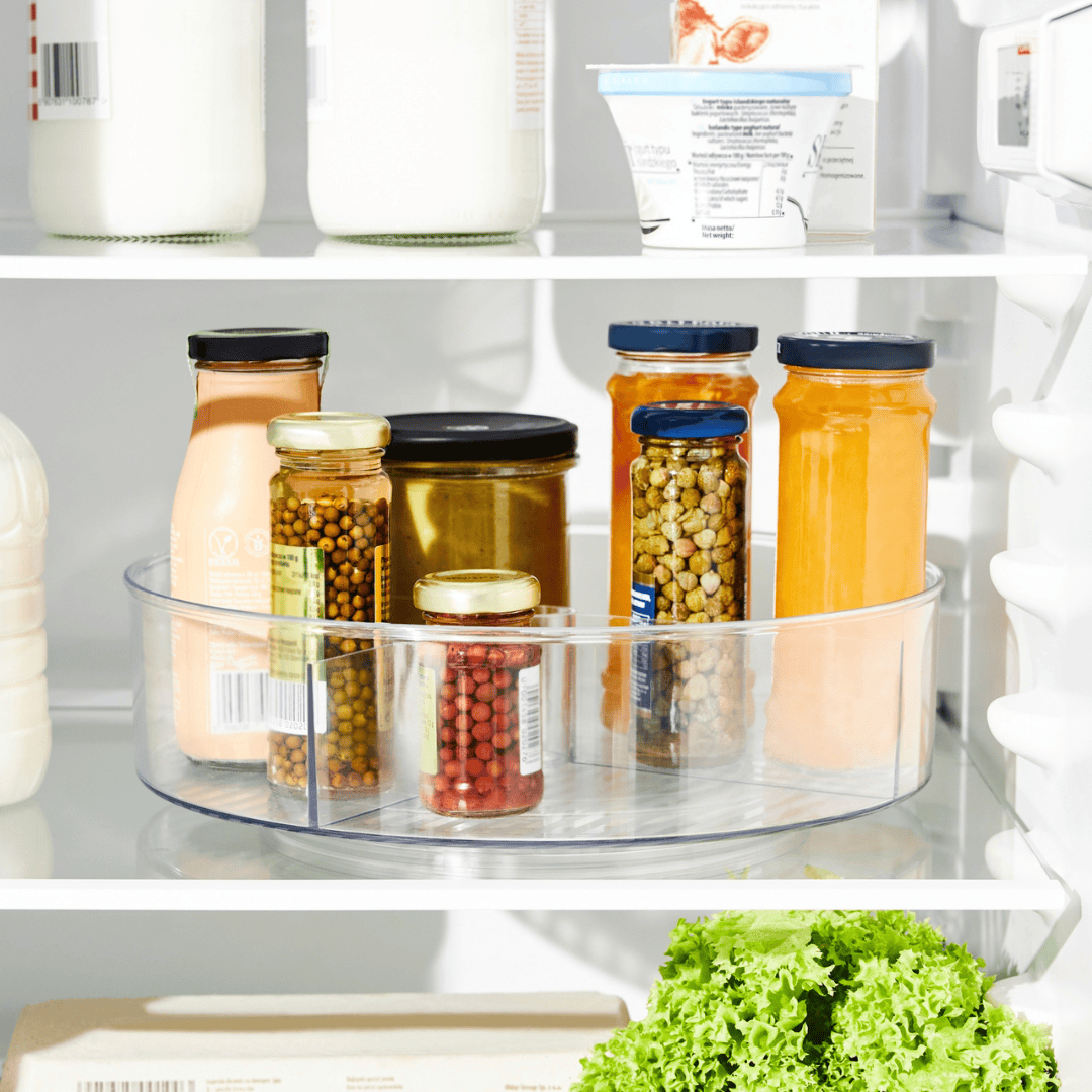 Bye, bye Unordnung! Mit dem praktische Drehteller von ROTHO hat das Wühlen nach Ölen, Gewürzen, Konserven, Putzmittel,  Parfums, Lippenstiften und vielem mehr ein Ende. Die Schränke sind übersichtlicher eingeräumt und man kommt durch die 360°-Drehbarkeit ganz leicht auch an hinten stehende Produkte ran.