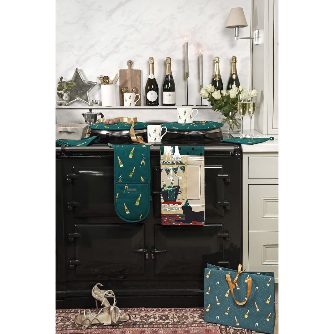 Dieses Geschirrtuch mit Schlaufe zum Aufhängen bringt Partystimmung zu Silvester.