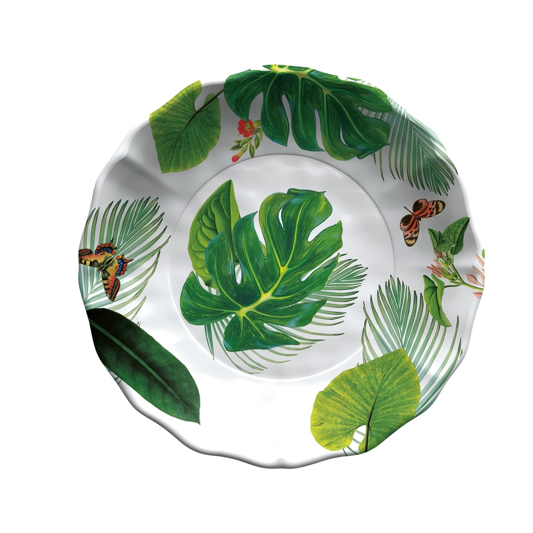 Dieses super leichte Melamin-Geschirr ist einfach zu reinigen und sieht toll aus. Mit dem Palmenblatt-Print kommt sofort Sommerstimmung auf den Tisch.