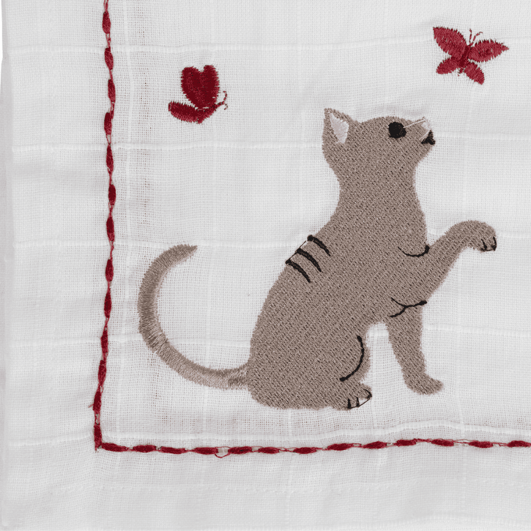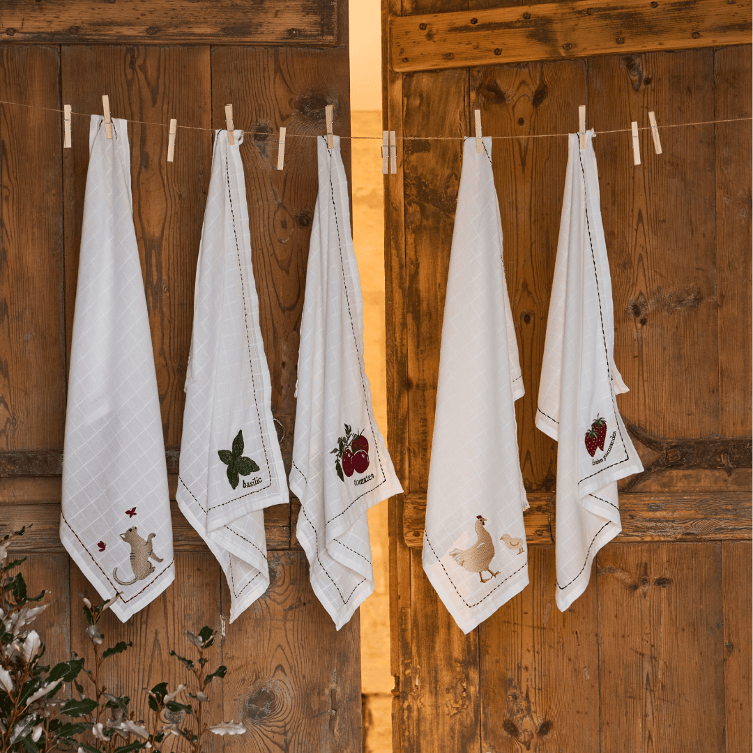 Miau! Dieses saugfähige Baumwoll-Geschirrtuch mit Kätzchen-Stickerei gewinnt definitiv jeden Niedlichkeits-Wettbewerb – und bringt eine stilvoll Portion Landhaus-Flair in die Küche. Auch schön als Geschenk!
